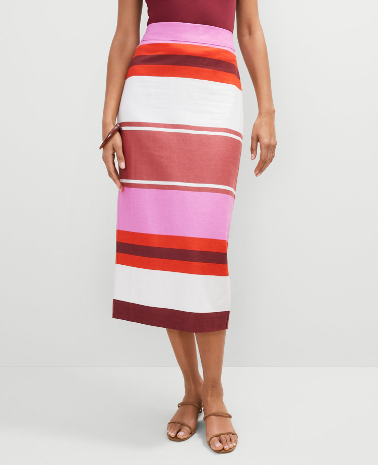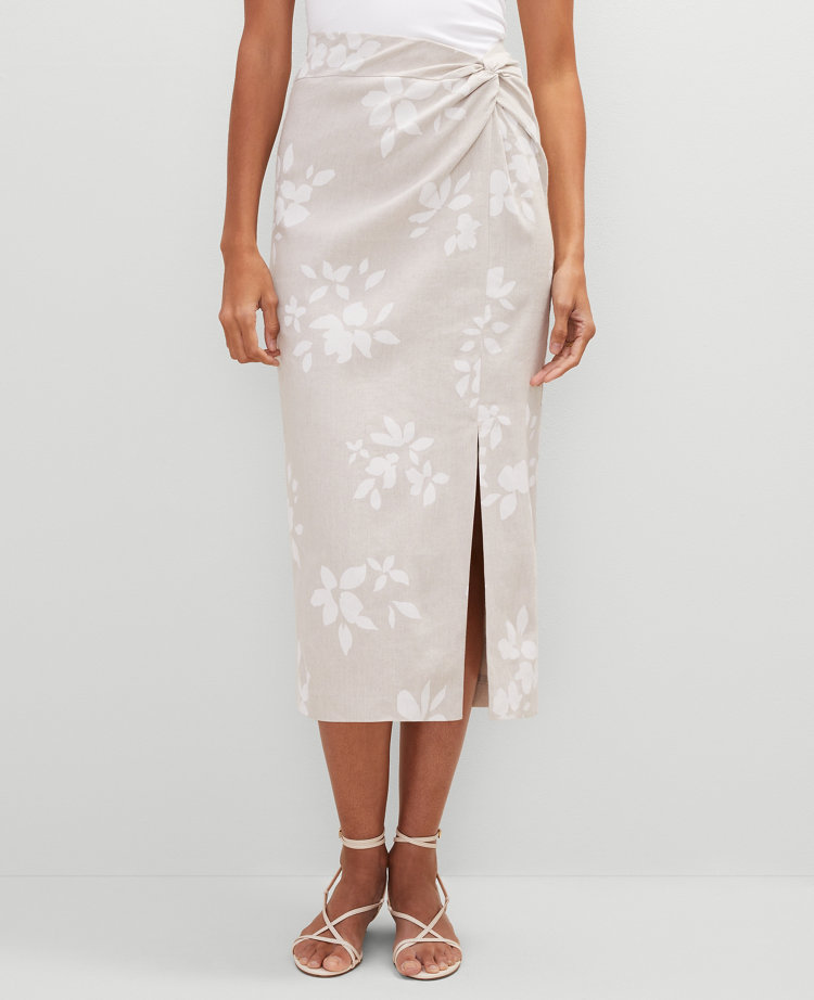 Studio Collection Scalloped Linen Blend Midi Skirt