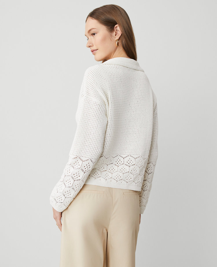 Petite Crochet Collared Sweater