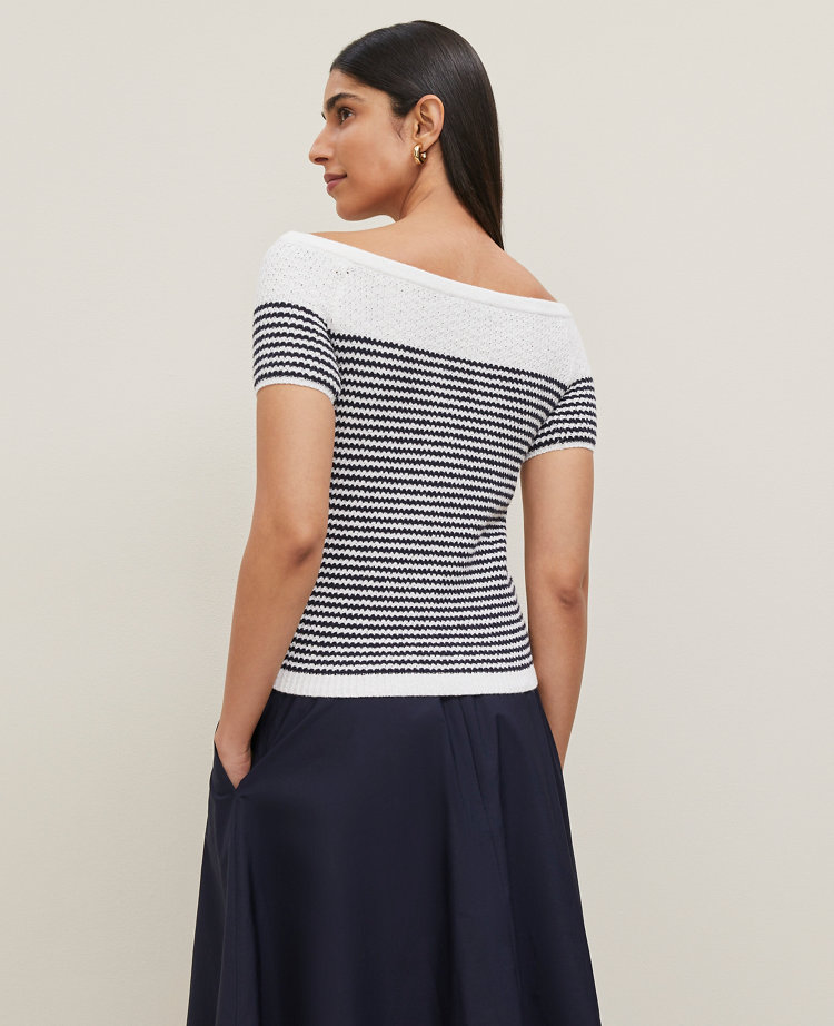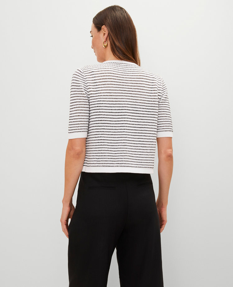 Petite Weekend Collection Striped Open-Stitch Sweater Shell