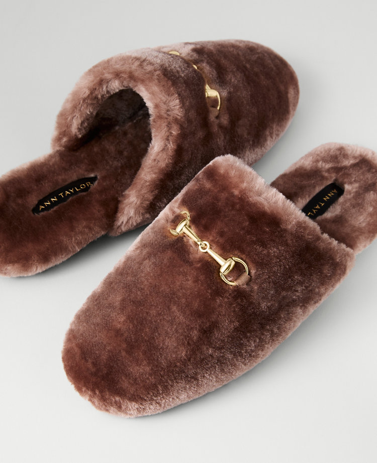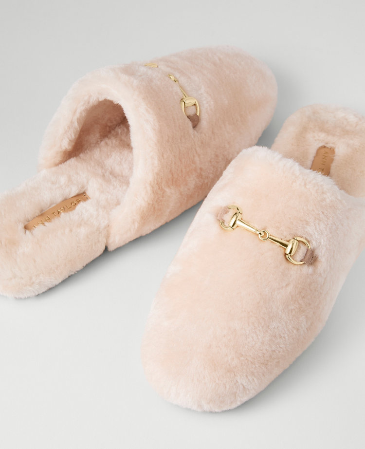 Weekend Collection Horsebit Fuzzy Slide Flat