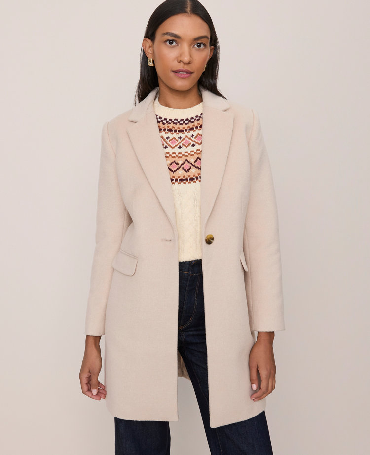 Impeccably tailored, this covetable classic instantly elevates your cool weather wardrobe. Notched lapel. Long sleeves with functional sleeve buttons for added styling options. One-button front. Front flap besom pockets. Back vent. Lined.