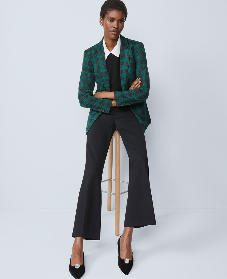 Smoothly structured with a custom tailored feel and smart plaid pattern, our classic blazer is a modern suiting essential. Notched lapels. Single-button front. Long sleeves with button cuffs. Front besom pockets. Back vent. Lined.