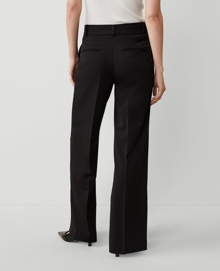 A modern must-have with a statement leg and flattering high waist. Front zip with button closure. Belt loops. Front off-seam pockets. Back besom pockets.