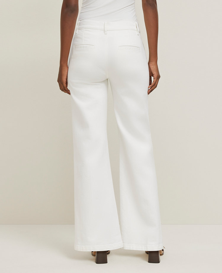 Our mid-rise wide-leg jeans are designed with new pockets that smooth, flatter and hold your shape. Performance stretch denim sculpts, shapes and supports all day long. Front zip with button closure. Belt loops. Slash pockets. Back welt pockets.
