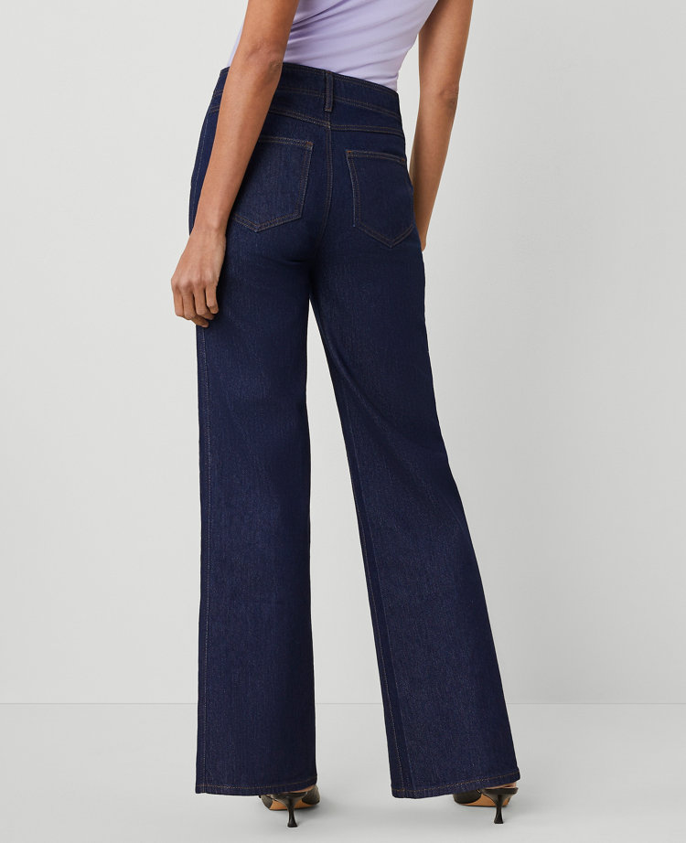 Our high-rise, wide-leg jeans are designed with sculpting pockets and crafted in performance stretch denim that smooths, shapes and supports all day long. Front zip with a button closure. Belt loops. Slash pockets. Back patch pockets.
