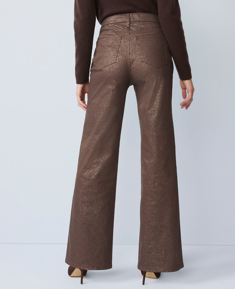 Done in a pretty metallic shimmer, our wide-leg jeans are designed with sculpting pockets that smooth, flatter and hold your shape. Front zip with button closure. Belt loops. Classic five-pocket styling.