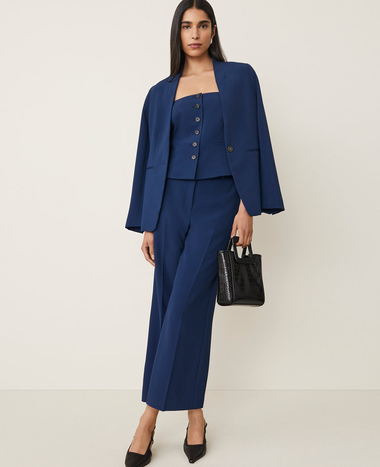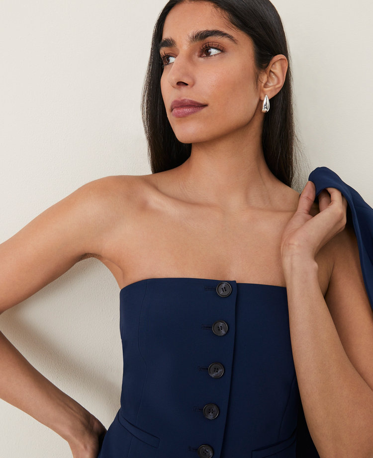 All the refined style of a vest in a strapless silhouette, this polished piece is irresistibly chic. Strapless neckline with hidden gripper tape on inside top edge. Button front. Welt pockets. Side zip. Lined.