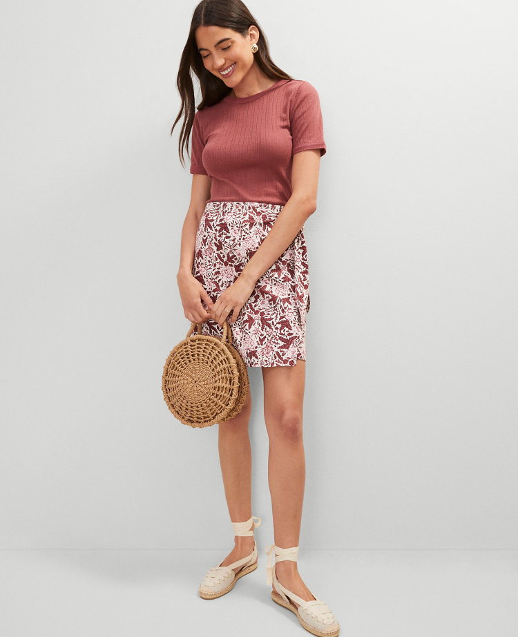 Weekend Collection Floral Linen Blend Wrap Skirt